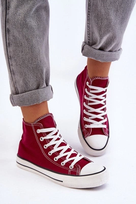 Damskie Trampki Klasyczne Wysokie Bordowe Remos
