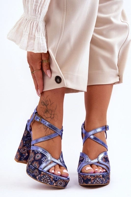 Skórzane Sandały Na Obcasie Maciejka 06084-17 Granatowe