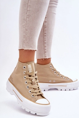 Wysokie Materiałowe Trampki Na Platformie Big Star LL274160 Beżowe