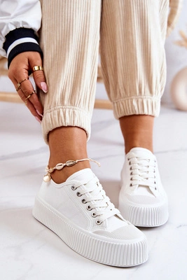 +5Niskie Trampki Na Platformie Białe Mischa