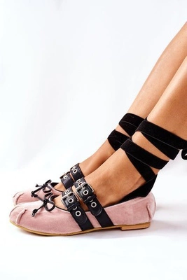 Wiązane Welurowe Baleriny Lu Boo Różowe