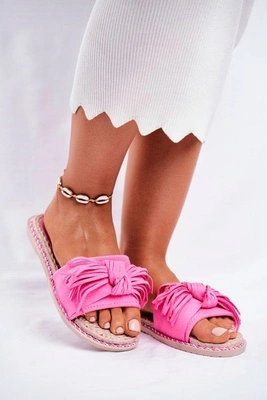 Klapki Damskie Z Kokardką Fuksja Neon Thailand