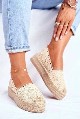 Espadryle Damskie Koronkowe Białe Platforma Desante
