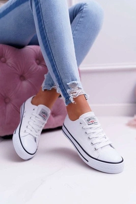Trampki Damskie Niskie Materiałowe Białe FreeTime