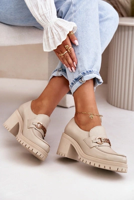 Zazoo 20175 Półbuty Damskie Na Słupku Skóra Naturalna Jasnobeżowe