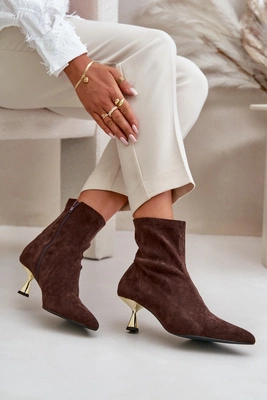 Botki Damskie Na Szpilce Eko Zamszowe Z Noskami W Szpic Brązowe Irithare