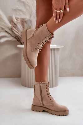 Botki Workery Damskie Ocieplane Na Zamek Eko Zamszowe Beżowe Mardia