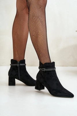 Ocieplane Botki Damskie Na Słupku Eko Zamszowe Czarne Saivia