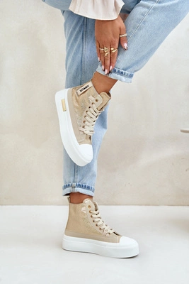 Damskie Wysokie Trampki Na Platformie Beżowo-Złote Averira