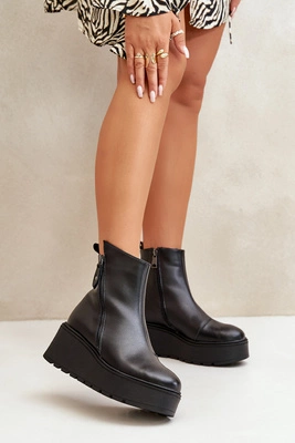 Ocieplane Botki Damskie Na Koturnie I Platformie Skóra Naturalna Czarne Vinceza 58340