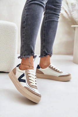 Skórzane Sneakersy Damskie Vinceza 7923 Beżowe