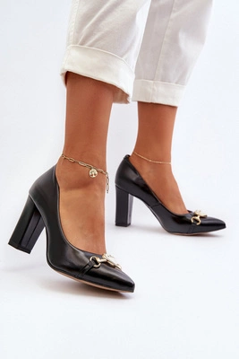 Zazoo 2453/OS Zamszowe Czółenka Na Słupku Z Sercem Czarne