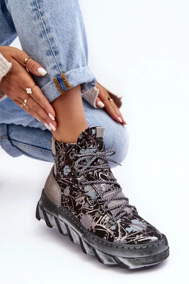 Skórzane Damskie Ocieplane Botki Maciejka 06146-03 Szare