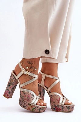 Sandały Na Obcasie Maciejka 05181-25 Złoto-Czarne