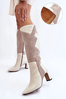 Damskie Zamszowe Kozaki Kowbojki Lewski 3094/F Ciemnobeżowe