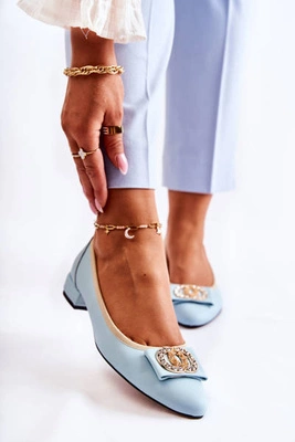 +1Skórzane Baleriny Z Ozdobą Niebieskie Joliet