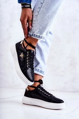 Skórzane Buty Sportowe Z Ozdobą Czarne Calerie