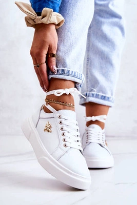 +1Skórzane Buty Sportowe Z Ozdobą Białe Calerie