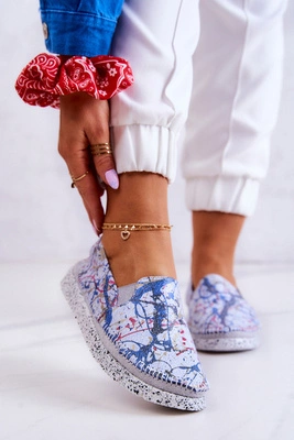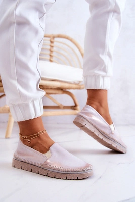 +1Damskie Skórzane Tenisówki Slip-On S.Barski Holograficzne Srebrne
