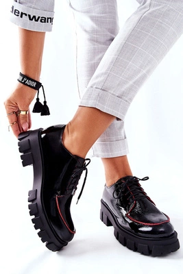 Skórzane Lakierowane Półbuty Maciejka 05035-23 Bordowe