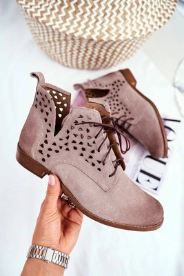 Botki Damskie Skórzane Trzewiki Maciejka Brzoskwiniowe 04468-18