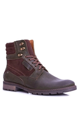 Neex Oliwkowe Skórzane Ocieplane Męskie Botki Grigor