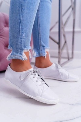 +1Półbuty Damskie Tenisówki Maciejka Skórzane Białe 4049A