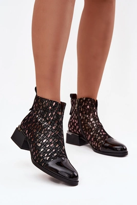 Lakierowane Botki Damskie Z Naturalnej Skóry Na Niskim Obcasie D&A LZ52-960 Czarne
