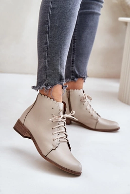 Damskie Skórzane Botki Workery Z Przypinkami Beżowe CheBello 4294