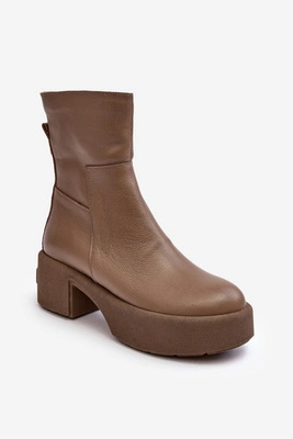 Ażurowe Damskie Skórzane Botki Ciemnobeżowe Lewski 3329