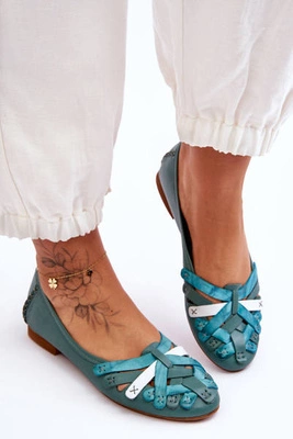 Damskie Skórzane Baleriny Maciejka 01358-36 Turkusowe