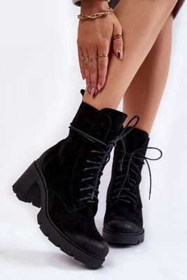 Damskie Zamszowe Botki Na Obcasie Czarne Lemar Berit