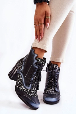 Damskie Kozaki Na Obcasie Lewski Shoes 3235 Czarne