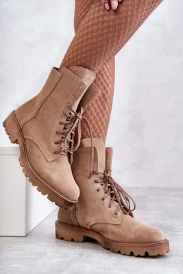 Modne Zamszowe Botki Sznurowane Beżowe Selma