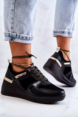Skórzane Buty Sportowe Na Koturnie Czarne Rayana