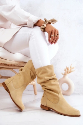 Skórzane Ocieplane Botki Beżowe Khaleni