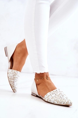 +2Skórzane Ażurowe Sandały Lewski Perłowe 3049 Białe