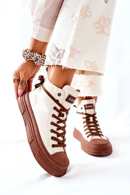 +1Damskie Ocieplane Trampki GOE Wysokie II2N4034 Białe