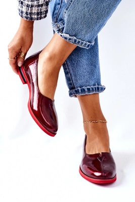 Skórzane Lakierowane Półbuty Maciejka 05035-23 Bordowe