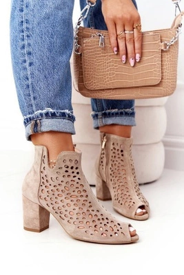 Damskie Ażurowe Botki Zamszowe Cappuccino Susannah