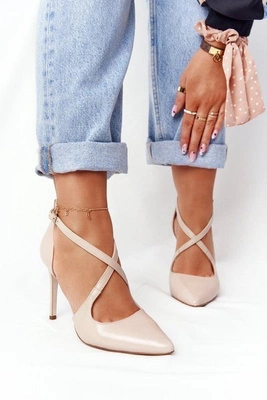 Eleganckie Skórzane Szpilki Visconi 7400 Beżowe