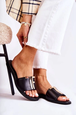 Damskie Klasyczne Skórzane Klapki Czarne Adele