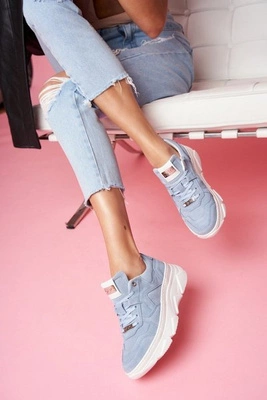+2Damskie Sportowe Skórzane Obuwie GOE Niebieskie FF2N3013