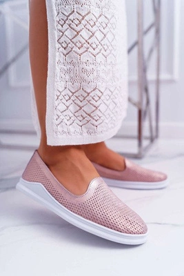 Baleriny Damskie Maciejka Skórzane Różowe 03497-15