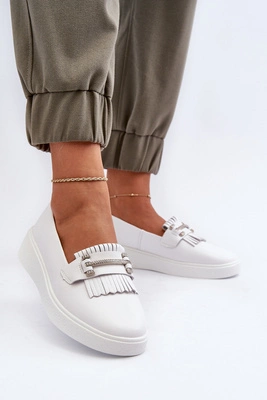 +4Pokaż filmSkórzane Mokasyny Damskie Z Ozdobą Białe S.Barski LR339