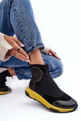 Damskie Buty Sportowe Skórzane Maciejka 06295-01 Czarno-Żółte