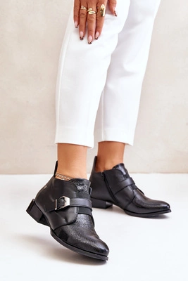 Skórzane Niskie Botki Na Zamek Maciejka 06692-01 Czarne