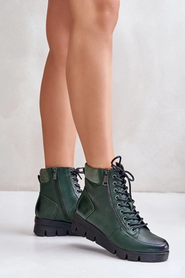 Lekkie Ocieplane Botki Damskie Na Platformie I Koturnie Ciemnozielone Savindria