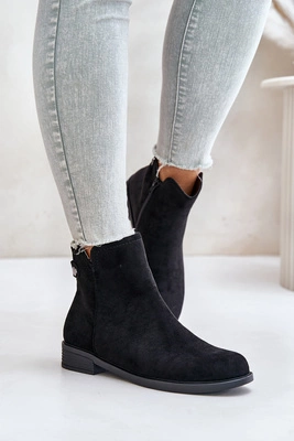 Ocieplane Niskie Botki Sztyblety Na Zamek Eko Zamszowe Czarne Telluara