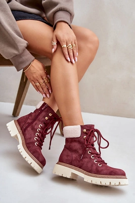 Ocieplane Trapery Botki Damskie Na Zamek Bordowe Ferelia